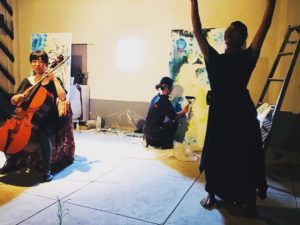 東京からチェリスト/シンガーソングライター成田千絵ちゃん、踊り/中野千春姉さんとのイベントは4回目?
